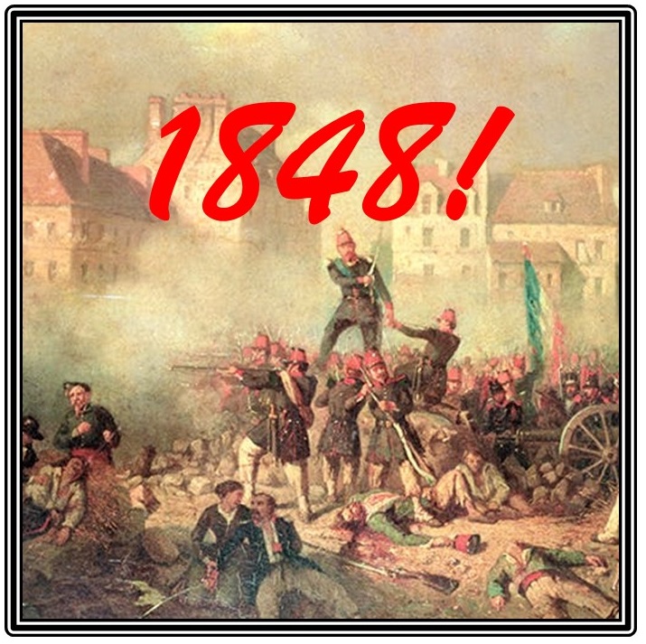 1848! The revolutions of 1848 came to be known as the "Spring of Nations," forever changing the world we live in. While these revolutions did not feature many set-piece battles, they can still be the subject of an engaging miniatures wargame using this app, which puts players in the role of revolutionary leaders trying to raise the populace and overthrow the tyrannical forces of Absolutism. Rouse the workers and arm them with captured weapons! Sack the Grand Duke's palace and declare a Republic! Liberate political prisoners (and the national treasury while you're at it)! But watch out for the government troops - if you can't incite them to mutiny, your republic may not last very long... Designed for a moderate (100-200 figure) 25mm collection, but can be played in other scales.