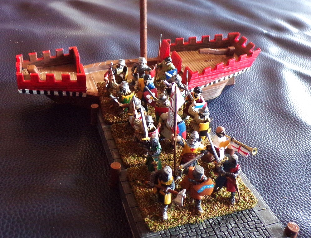 The cog with a unit of Crossbowmen and some Foot Knights.