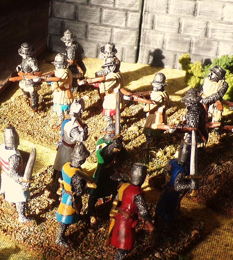 Crossbowmen: The crossbows of the era were powerful, but very slow to load. Crossbowmen operated in fairly dense units, sometimes protected by pavises (specify by scenario). Crossbowmen are not very good in melee. Skirmishing troops armed with crossbows count as Irregulars.