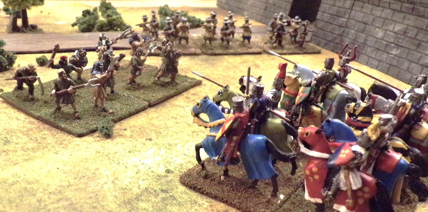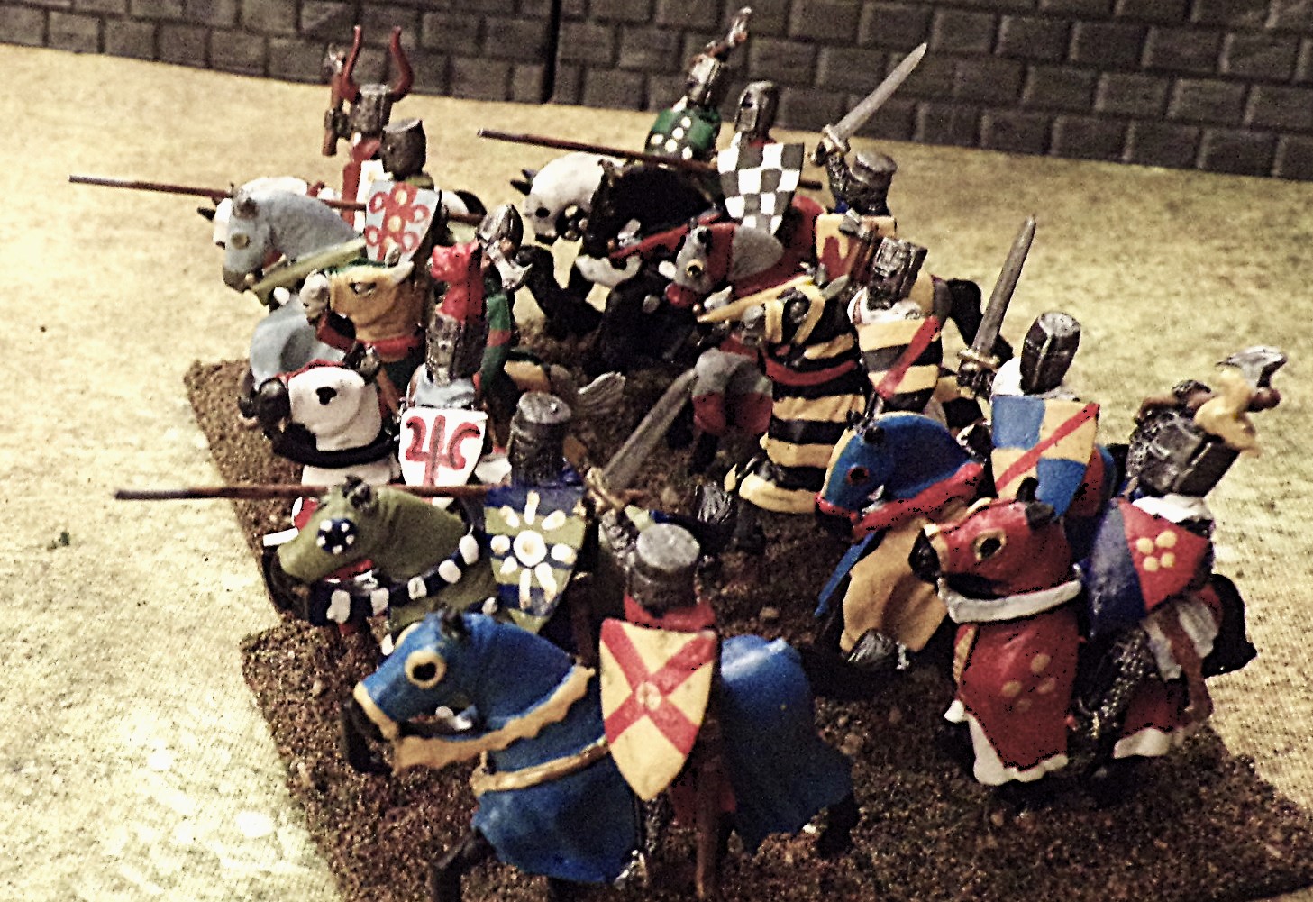 Armies of the era tended to be small, and lend themselves well to tabletop recreation. There is no hard-and-fast figure representation scale, so players can adjust this to suit the battle they are refighting, but a typical army will have from 2 to 4 leaders, each commanding 3 to 5 units. As in history, armies are organised into "battles" (wings, essentially) each of which would be lead by a knight of suitable birth and reknown. Such leaders are very important during play, as much for restraining their knights - always anxious to come to grips with any visible foe - as for leading their troops. Losing a leader in combat can, however, be devastating.