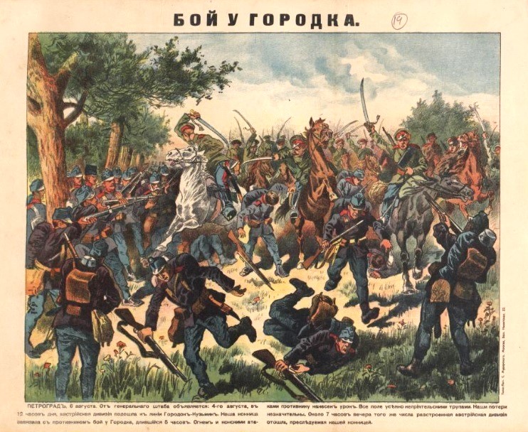 Russian cavalry routs Austro-Hungarian Landsturm near Gorodok, southwest of Lemberg.