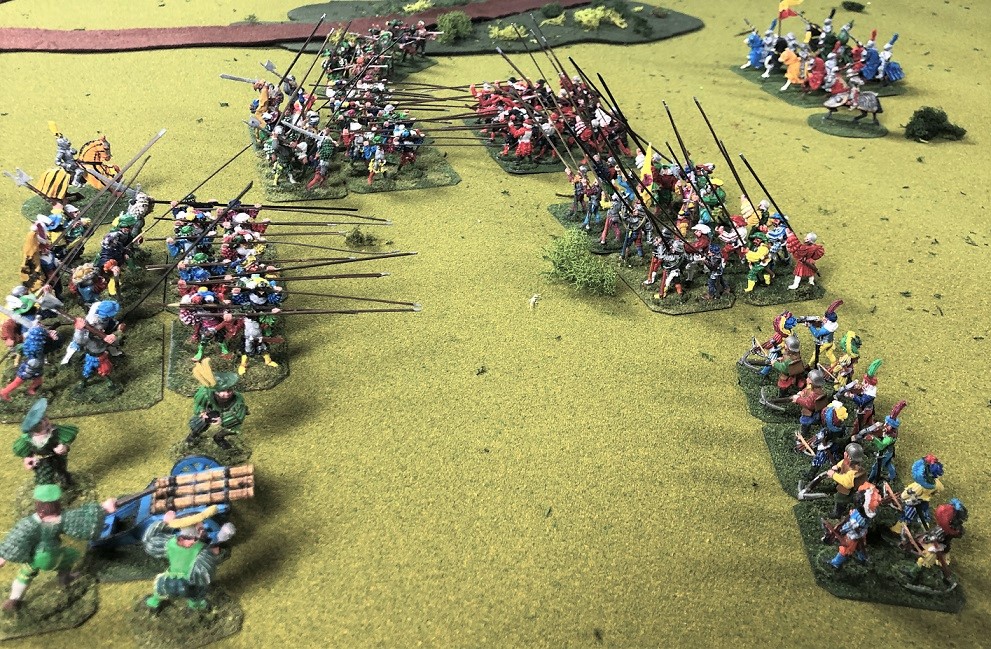 Ferocious Swiss Charges: Swiss mercenaries were famed for their insistence on directly attacking the enemy, so that they could earn their pay as promptly as possible, even when they faced difficult tactical situations. To reflect this, Swiss Pikemen will be required to Charge any eligible enemy unit (Gendarmes, Pikemen of all types, Footmen, Arquebusiers, Archers, Crossbowmen, Levy, Cannon, or Forlorn Hopes) which are within Charge range (9 inches) if they have not otherwise acted earlier in the turn, as indicated in the Turn Sequence section above. This does not require any activation or command from a general - they will do this under their own initiative, and may not be prevented from so doing.