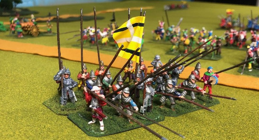 Bad War: When Landsknechts and Swiss Reislaufer fought, no quarter was given - these melees were essentially to the death. To reflect this, if Swiss and Landsknecht Pikemen are engaged in a melee, they will not be removed from play when half their bases are gone. So long as these opponents are directly opposed and involved in a combat, they will continue to fight until all of their bases have been removed from play. If reduced below half, while destroying their opponent, they will be removed from play at the end of the combat but will not count as a destroyed unit for victory purposes.