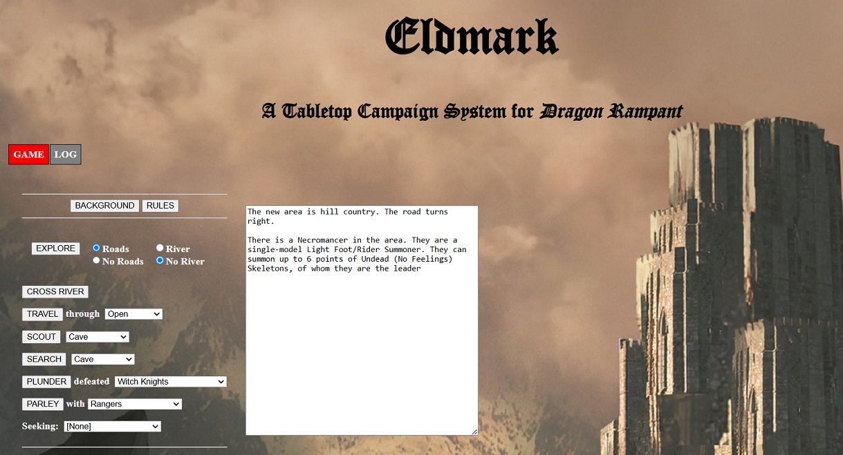 The game app is used to perform all campaign functions, with battles being fought using the Dragon Rampant rules. All you need is a computer, tablet, or smartphone which can access a web page. Players should read through the 14-page Guide to Play before starting - the app is intuitive and easy to use.