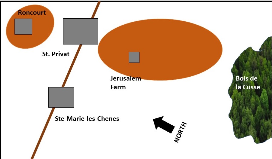 The French will deploy anywhere on or to the east of the hills, and in Roncourt, St. Privat, Jerusalem Farm, and may deploy a single unit forward in Ste-Marie-les-Chenes. The Prussian forces will move onto the lower table edge, starting on the first turn, in Maneuver formations. Any French deployed in Ste-Marie-les-Chenes may be assaulted on the first turn by Prussian units within range if desired.