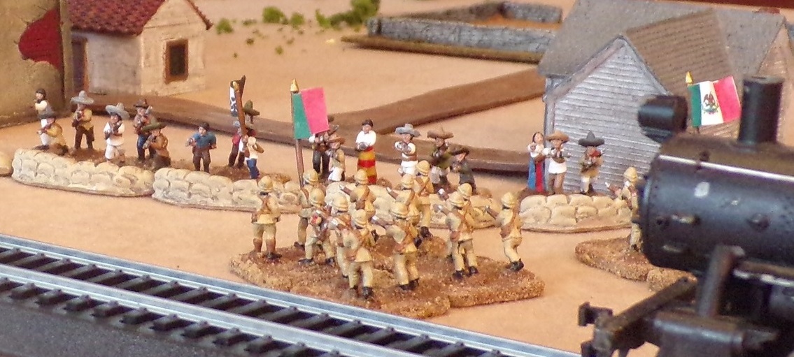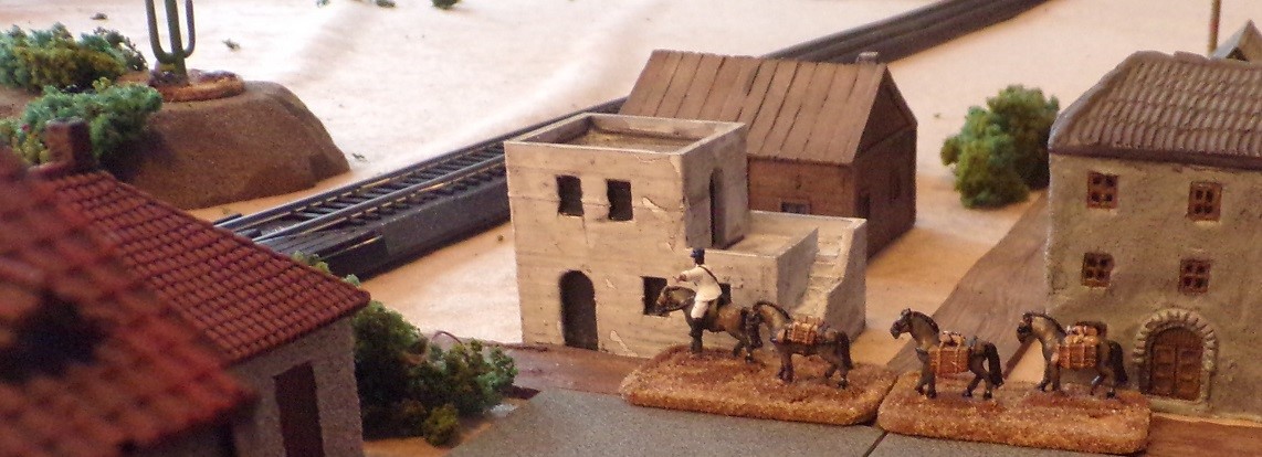 Máquina Loca Units: These represent trains loaded with explosives, and they were used in several cases during the conflict. (Notably at Tierra Blanca, where the Villistas used one to blow a hole in the lines of the Orozquistas.) These trains were just a locomotive and a coal tender, packed with dynamite and shrapnel, and so are represented with just the single locomotive base. Once launched, they will proceed down the track at March speed (assuming a sufficient run-up - it must make a Manuever first) and explode when they reach their destination (either something blocking the tracks or a pre-determined end-point). Every unit within 6 inches will have to test for damage, as if they have been hit with an equal number of artillery bases making a Deployed Fire - the range is the unit's distance from the blast. Cover shielding the affected unit from the blast is taken into effect. Once used, the máquina loca is removed from play, and the track underneath it is destroyed. If an oncoming máquina loca is destroyed by fire, it immediately explodes, affecting whatever troops are in range and with all normal effects.