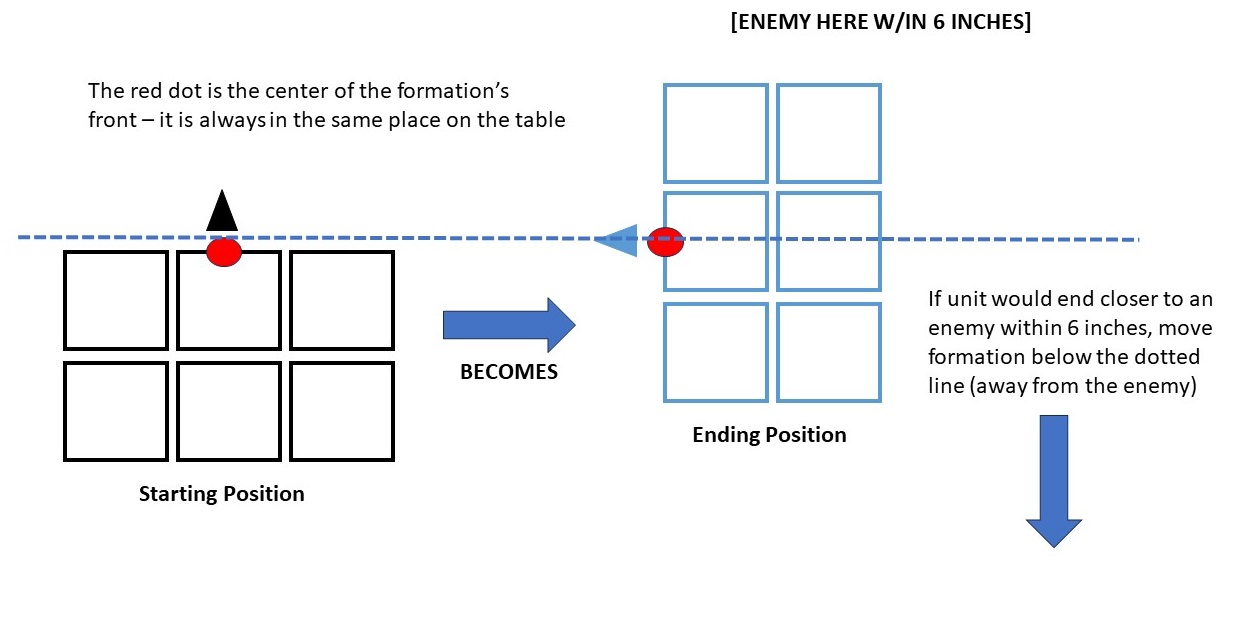 Note that units which are disordered or demoralized will retain their formation, and simply be marked as disordered or demoralized. Disorder and demoralization do not affect base move distances.