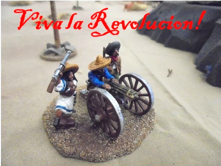 It is hoped that Revolucion! can change this, by providing gamers with a good alternative to game these larger battles using a dedicated rule set. While skirmish-level games are best played with 25mm/28mm figures, these are too large to capture the sweep of highly mobile battles involving entire armies. For this, the figures available (as of this writing) in 15mm/18mm are perfect. Peter Pig makes an excellent line in 15mm, available from Brookhurst Hobbies in the US, and Old Glory has an 18mm line (marketed under the Blue Moon label) called "Uprising in Mexico". It is hoped that 10mm and 6mm offerings may become available, but for now gamers will need to do a lot of conversions from other periods (although this isn't too difficult, given the availability of ACW, Colonial, and early WWI figures).