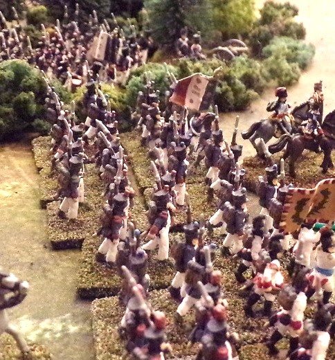 A horde of French attack, including some of their German allies from Wuerzburg! (Their uniforms and flags look like Austrian ones, but they're not...)