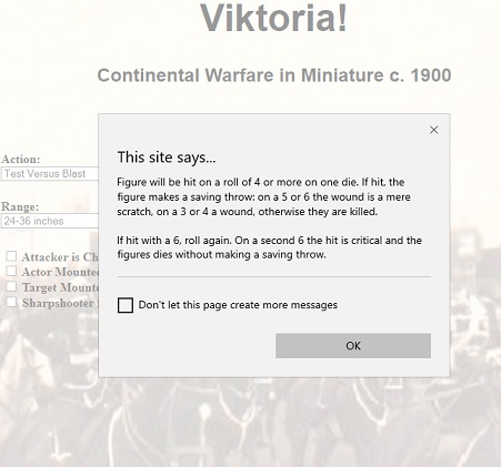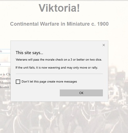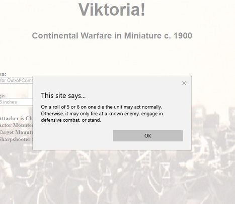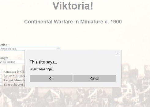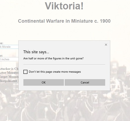 Again we click "Cancel" because the number of figures killed (or who have been ordered out of formation because they were wounded - see the rules) is still less than half the total number of figures in the unit. Finally, we see:
