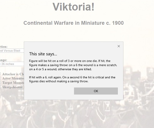We also have to look at the note at the bottom of the table, however: any figure which is hit with a 6 is subject to what we call a "head-shot" - a critical hit. Another roll of a 6 on one die and that figure is not allowed to save, but has been killed.
