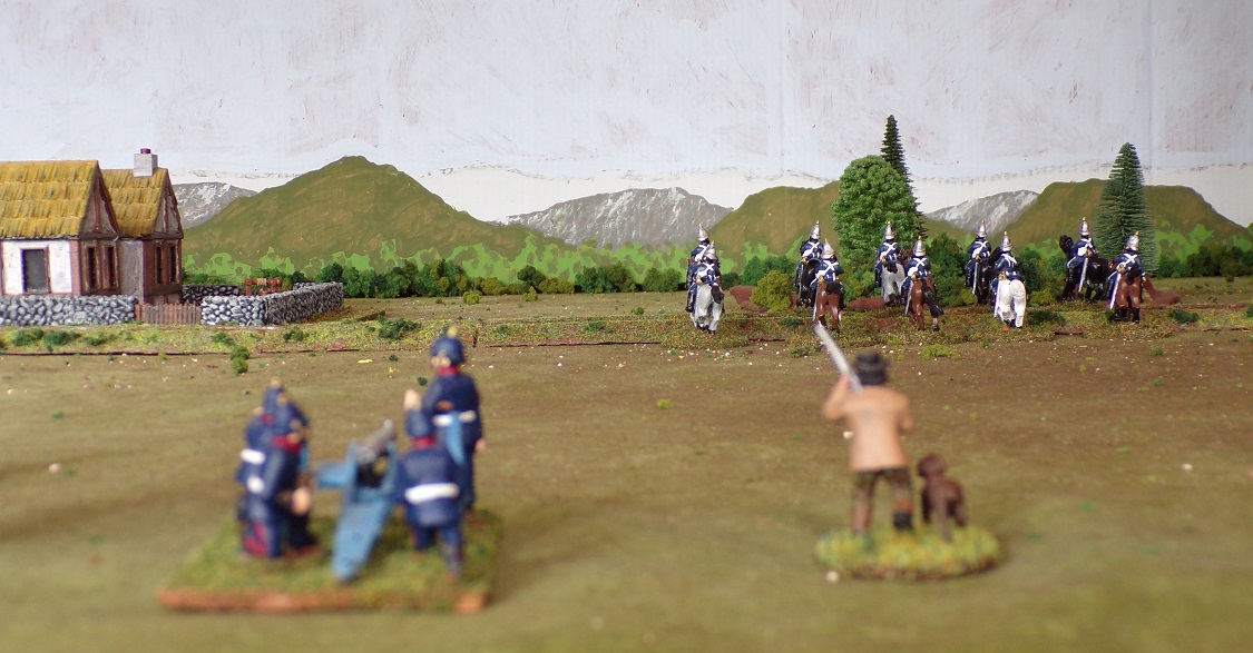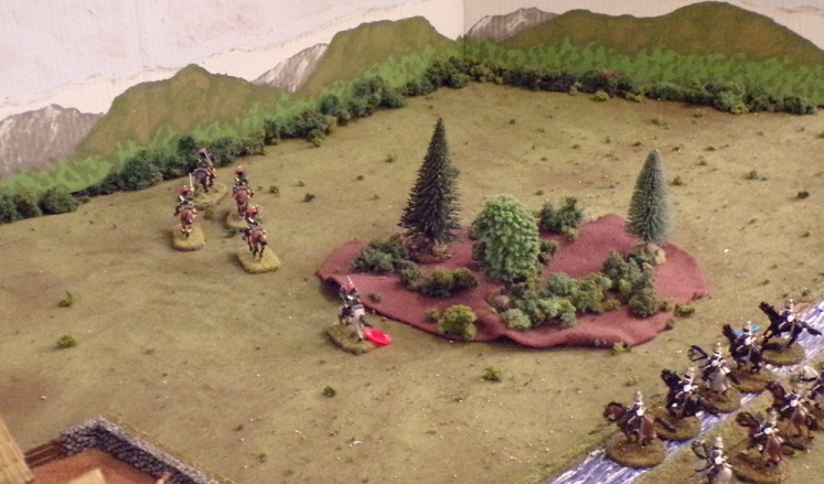 The good news, of course, is that the enemy hussars are only Conscipts, and their general is on the other side of the table with the jagers. They will have to roll for out-of-command to do anything too dangerous.