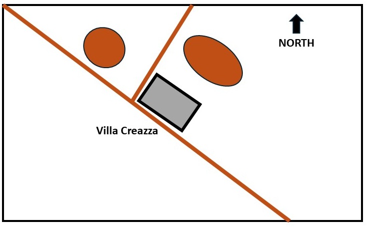 The map below shows a 4' x 6' table. The hills are both rough and provide soft cover. The town of Villa Creazza is surrounded by a stone wall and will provide hard cover, but is rough for any unit not marching through it.
