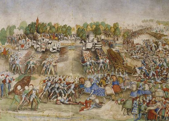 The League forces will set up anywhere to the west of the western hill. The Franco-Venetian forces set up anywhere to the east of the eastern hill. Deployment is done by alternating wings, or may be done blind prior to the game on the map by player agreement.